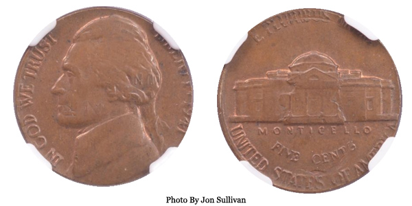 1941 Jefferson Nickel Struck on Cent