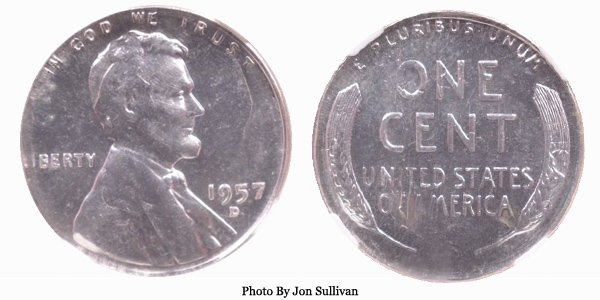 1957-D Lincoln Cent on Dime