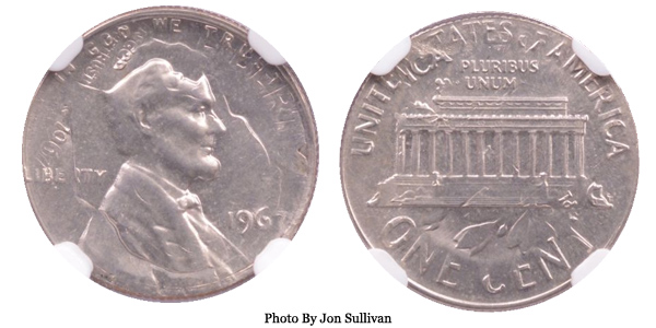 1967 Lincoln Cent on Dime