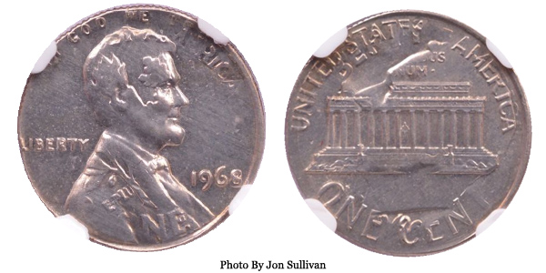1968 Lincoln Cent on Dime