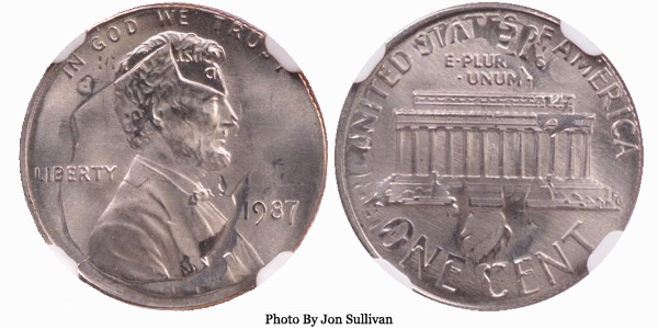 1987 Lincoln Cent on Dime