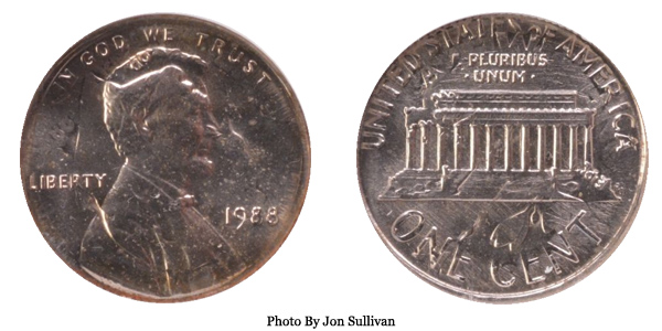 1988 Lincoln Cent on Dime