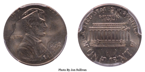 1992 Lincoln Cent on Dime