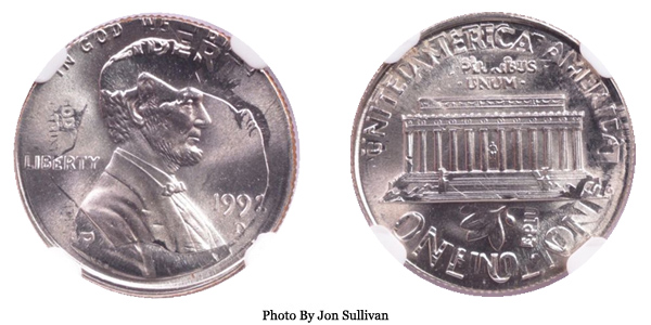 1999 Lincoln Cent on Dime