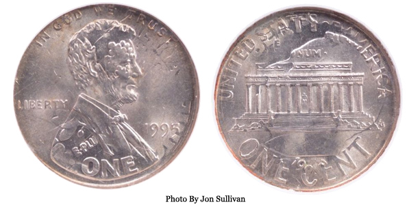 1995 Lincoln Cent on Dime