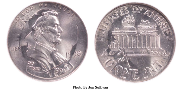 1998 Lincoln Cent on Dime