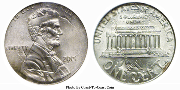 2001 Lincoln Cent on Dime