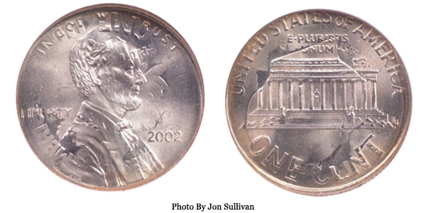 2002 Lincoln Cent on Dime