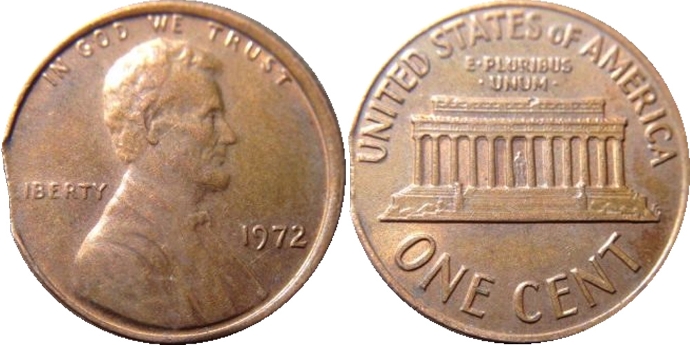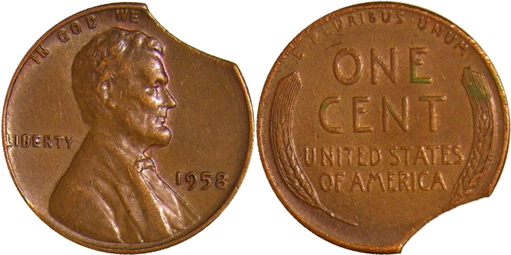 When examining clipped planchets, the side of the coin opposite of the clip will exhibit what is know in the coin industry as the "Blakesly Effect". During the upsetting process or rimming of planchets, if a section of the planchet is missing, there will be an absence of pressure in that area causing the opposite side of the coin to be flat and not as formed.