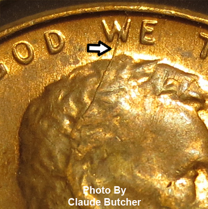 Die cracks can happen anywhere on a die but will usually happen in places where the die is weakest, like the corners of the Lincoln Memorial on the reverse side of Memorial cents, or the head of Lincoln's profile.