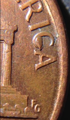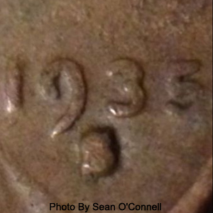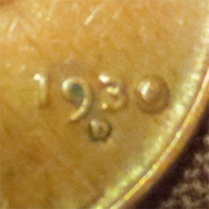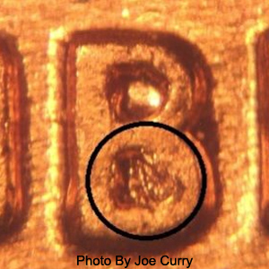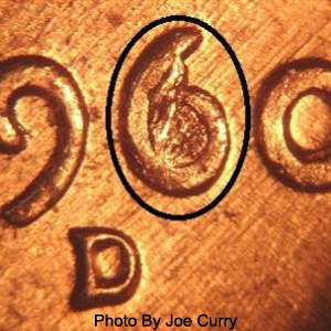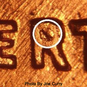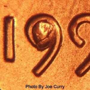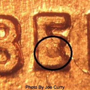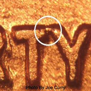 Another common area to see small die breaks is the inside of the numbers on the date.