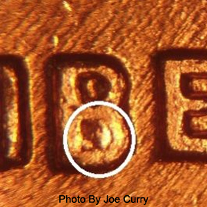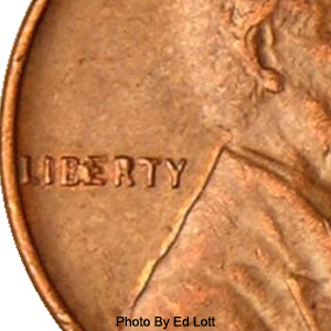 One of the most common places for a die to break is the thin area between the "B" and "E" of LIBERTY. These are known by collectors as "BIE" Cents. There are well over 1000 different types of BIE errors, most occurring in the 1950's.