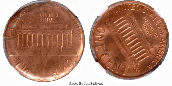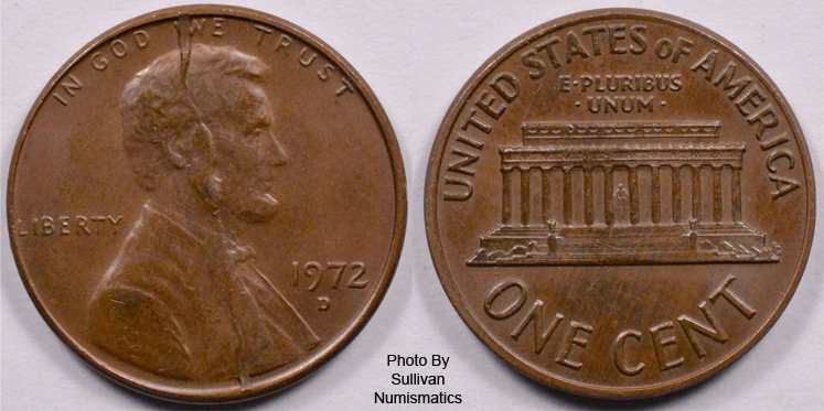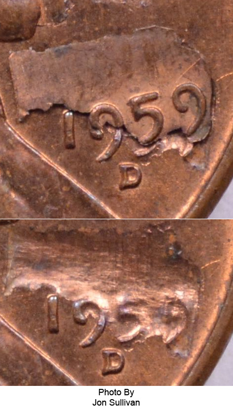A good example of this can be found on the reverse side of the 1973-D Lincoln cent. For an unknown reason, several reverse dies from the 1973-D cent show a raised area in a similar location. The raised area can change in size and shape from die to die, but is always found in the same location. It is found on the left side, and in the second and third bays of the Memorial building.