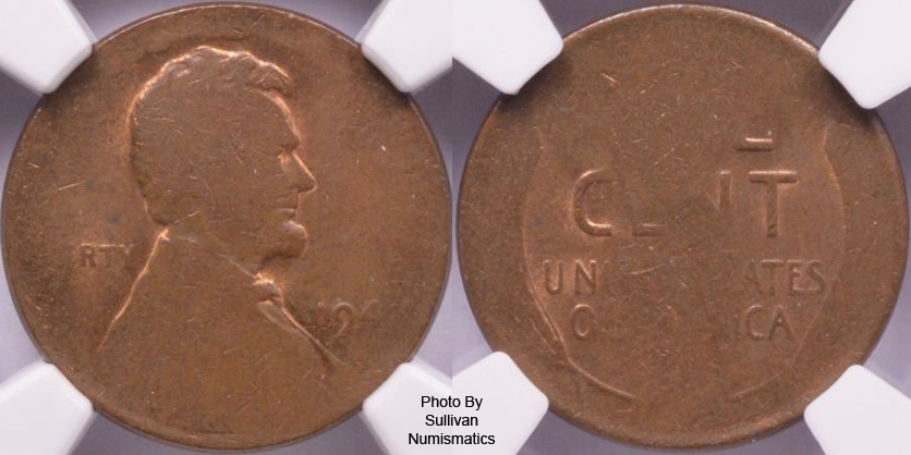 This coin has a laminated obverse with the small piece of the obverse having split off after strike.