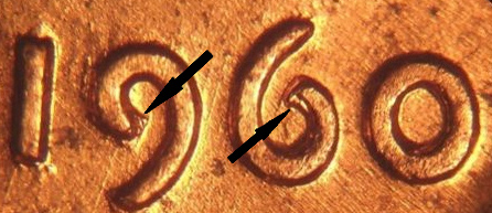 Another way to tell the difference between the 1960 large and small dates, is to look at the inside loops of the 6 and 9. The engraving on the master die looks like the photo below.