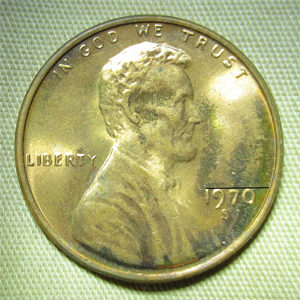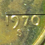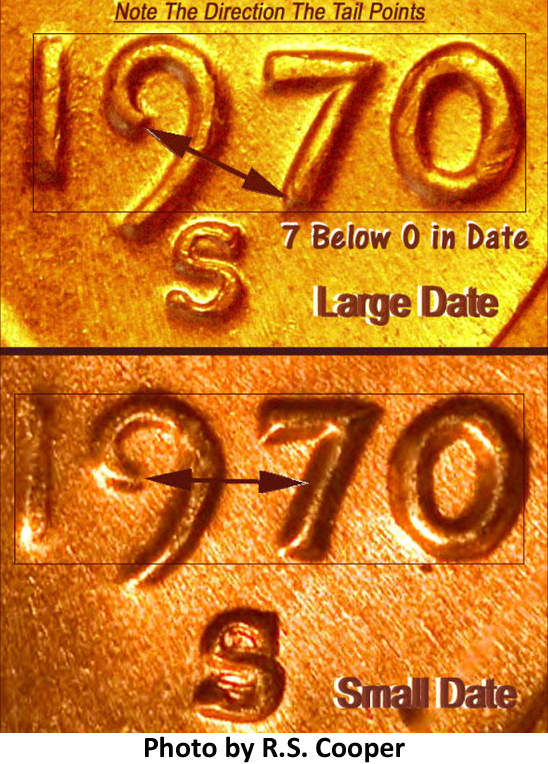 The photos above show a 1970-S large date cent. Notice how the top of the seven is lower than the other numbers in the date.