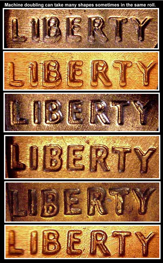 Many an excited collector has found the notorious machine doubled Lincoln cent and confused it with a true doubled die. To a seasoned collector, spotting the difference is easy. The machine doubling produces a flat, shelf like secondary image that is easily distinguished from the rounded, raised doubling produced by a doubled die. Cents before 1990 had the mint mark punched in by hand after the die was made, so a true doubled die before 1990 wouldn't show the same doubling on the mint mark. It is possible to have a doubled die that also shows machine doubling, the the doubled die part will still not show on the mint mark.