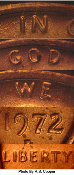 Master die doubling can be seen on a large percentage of 1972 cents from all three mints.