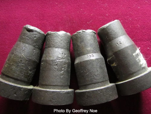 After the blanks are punched out, they are put through an upsetting machine that puts the rims on them to form planchets.