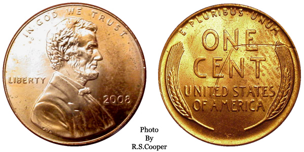 This was caused by problems with the plating process and is most common on cents minted in the 1980's, but can be found on any cent minted after 1982 when Copper plating was first used. Gas bubbles would become trapped beneath the Copper plating and cause these raised areas. They seem to be more common on cents from the Denver mint. Solid-alloy cents minted in 1982 and earlier can have occluded gas bubbles caused from heat generated when a planchet is struck. The expanding gas pushes a layer of metal towards the surface of the coin, resulting in a raised area or bubble. Occluded gas bubbles are much rarer than the blistered plating found on newer cents.