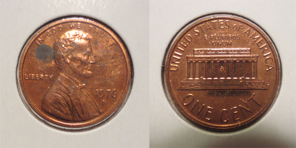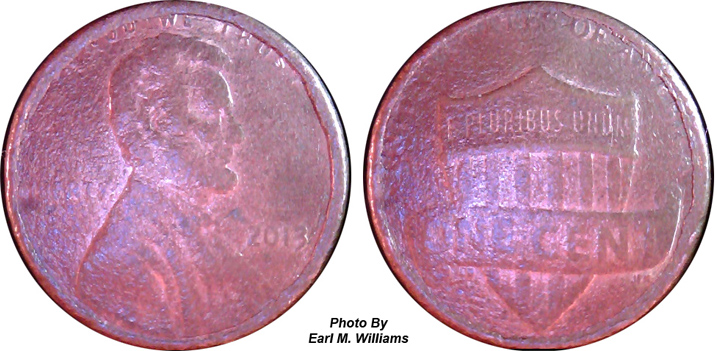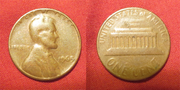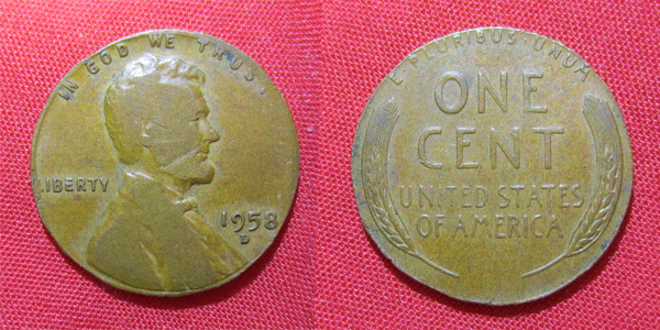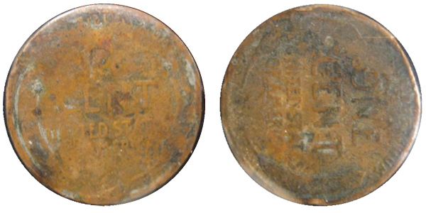 The coin above is an older undated wheat cent that shows the reverse on both sides.