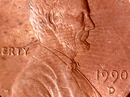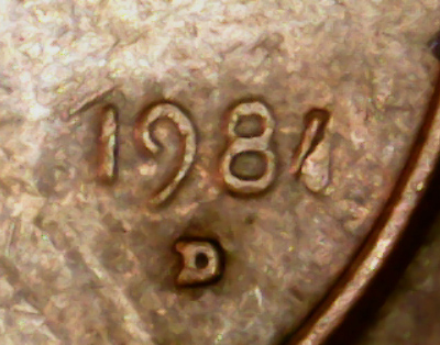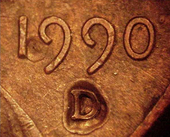 Coins can sometimes have the last digit in the date appear to be slanted. This is usually caused by a vending machine or coin wrapping machine.