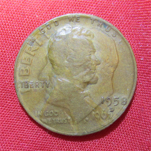 As the story goes, back in the 1950's - 1960's when it cost a dime to use the pay telephones and the really cool stuff was always in the dime gum ball machines, kids would file a penny down to match the size of a dime. Many an unsuspecting machine was taken advantage of this way. If you look at the edges of the coin and examine the dime overlay, it becomes clear that is what has happened in this case. You can even see how the face of the coin was filed down to match the thickness of the dime. Some cents do get minted on the wrong planchets but many are like this one!